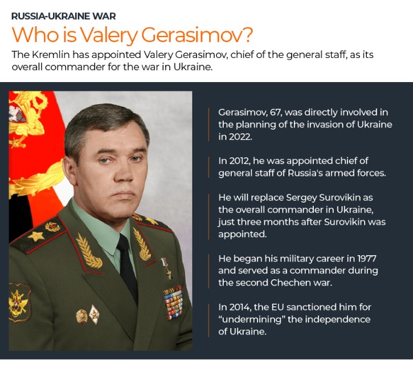 He changed General Sergei Surovikin, who was benched to replacement only 3 months after he was set up in the leading task.