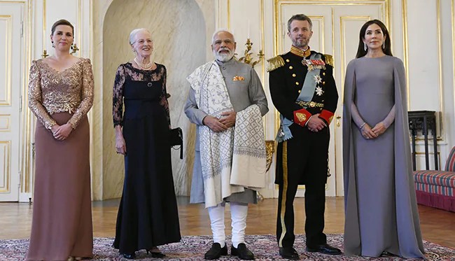 Prime Minister Narendra Modi on Tuesday attended a dinner organized by the Queen of the Kingdom of Denmark, Margrethe II at the Amalienborg Royal Residence in Copenhagen.