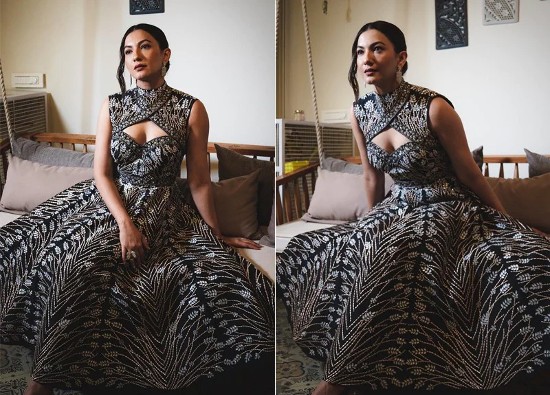 Gauhar Khan’s preference in elaborate evening dress is remarkable.