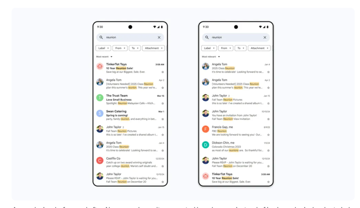 Then there’s another new feature: AI-powered search. Just before Gmail rolled out its E2EE feature, Google announced that Gmail search is getting smarter. Now it uses AI to show you more relevant results based on things like how recent emails are, which ones you click the most, and who you email often.
