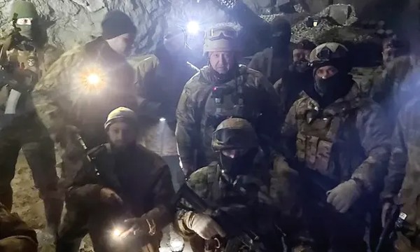 Yevgeny Prigozhin postures with several of his mercenaries in Ukrainian community renowned for its salt mines