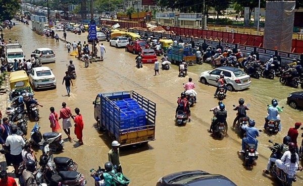 Hefty rain battered components of Bengaluru once more on Monday evening, creating flooding as well as several kilometre-long traffic.