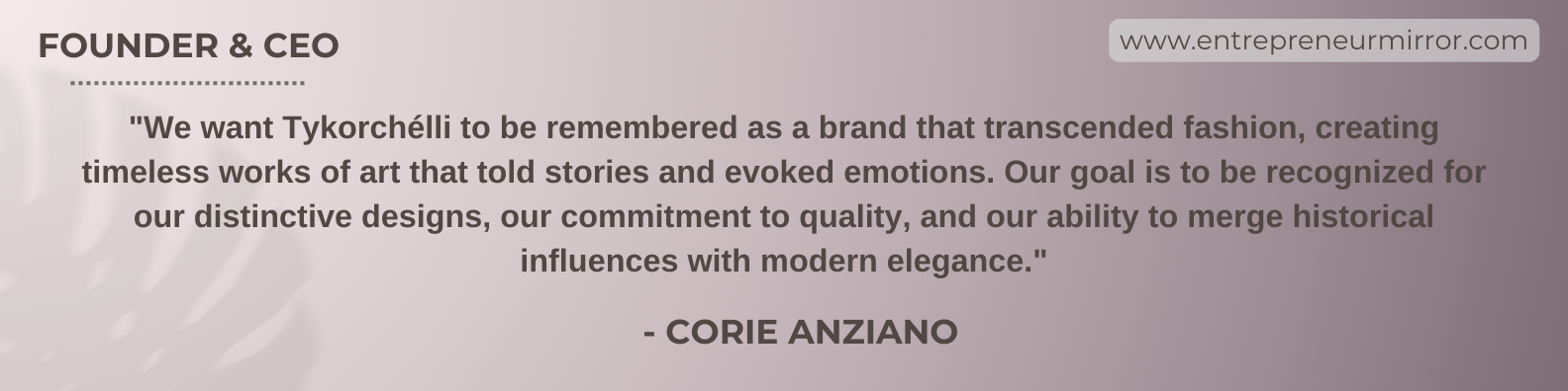 Corie said, “We want Tykorchélli to be remembered as a brand that transcended fashion, creating timeless works of art that told stories and evoked emotions. Our goal is to be recognized for our distinctive designs, our commitment to quality, and our ability to merge historical influences with modern elegance.