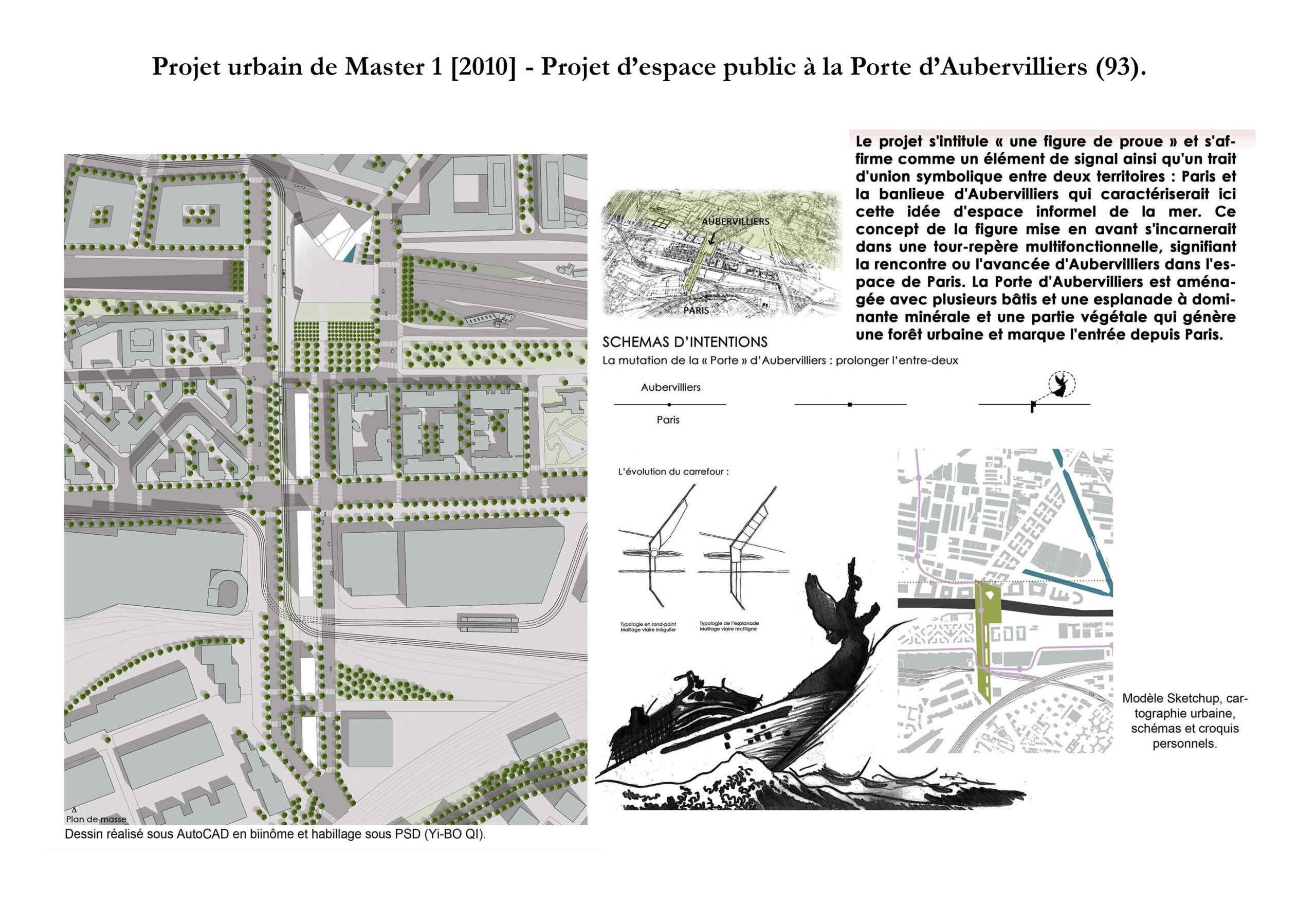 - Master 1’ project (ENSAPM studies) : “A Promenade in the Porte d’Aubervilliers” (93) which inspired the DE PORTZAMPARC’ agency in its design of the eco-city esplanade’ project in Grenoble in 2013. This study project aims to enhance the public spaces of the Porte d’Aubervilliers.