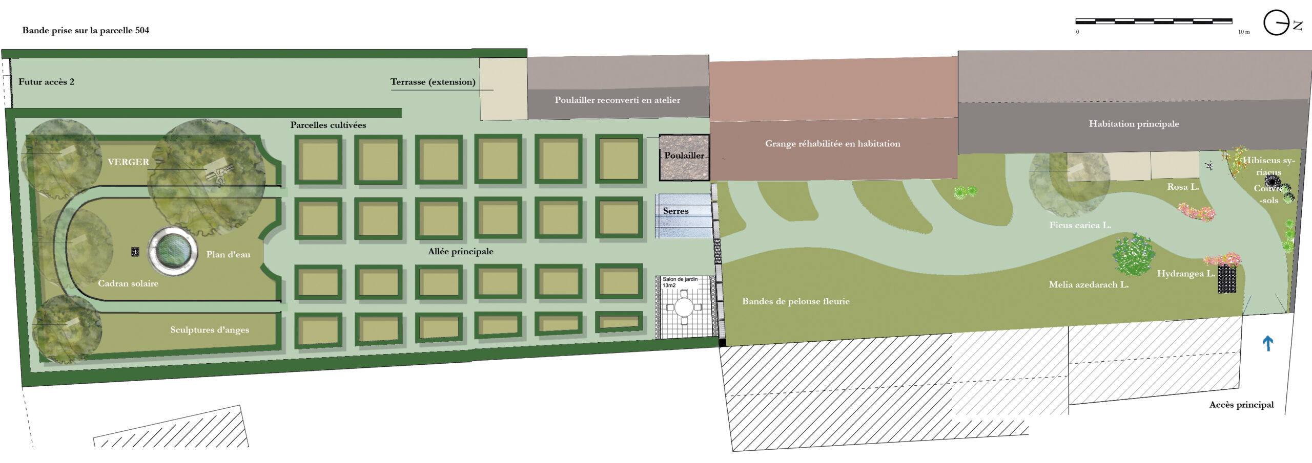 Inspired by the idea of an “Eden garden”, this project is featuring vegetable, medicinal, aromatic, condiment, floral, and fruit garden elements. This planning of a self-sufficient garden is based on the concept of “paradisiacal landscape design” and is located in Nouvelle-Aquitaine (DP, 2022 – current project).