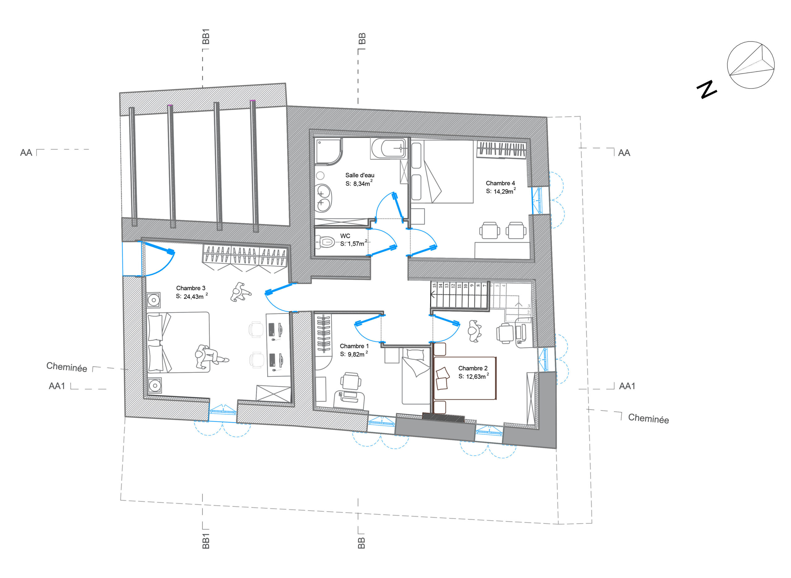 This “Permis de COnstruire” proposes an interior layout that aligns with the context of its rural bastide, which was it designed according to the golden ratio.