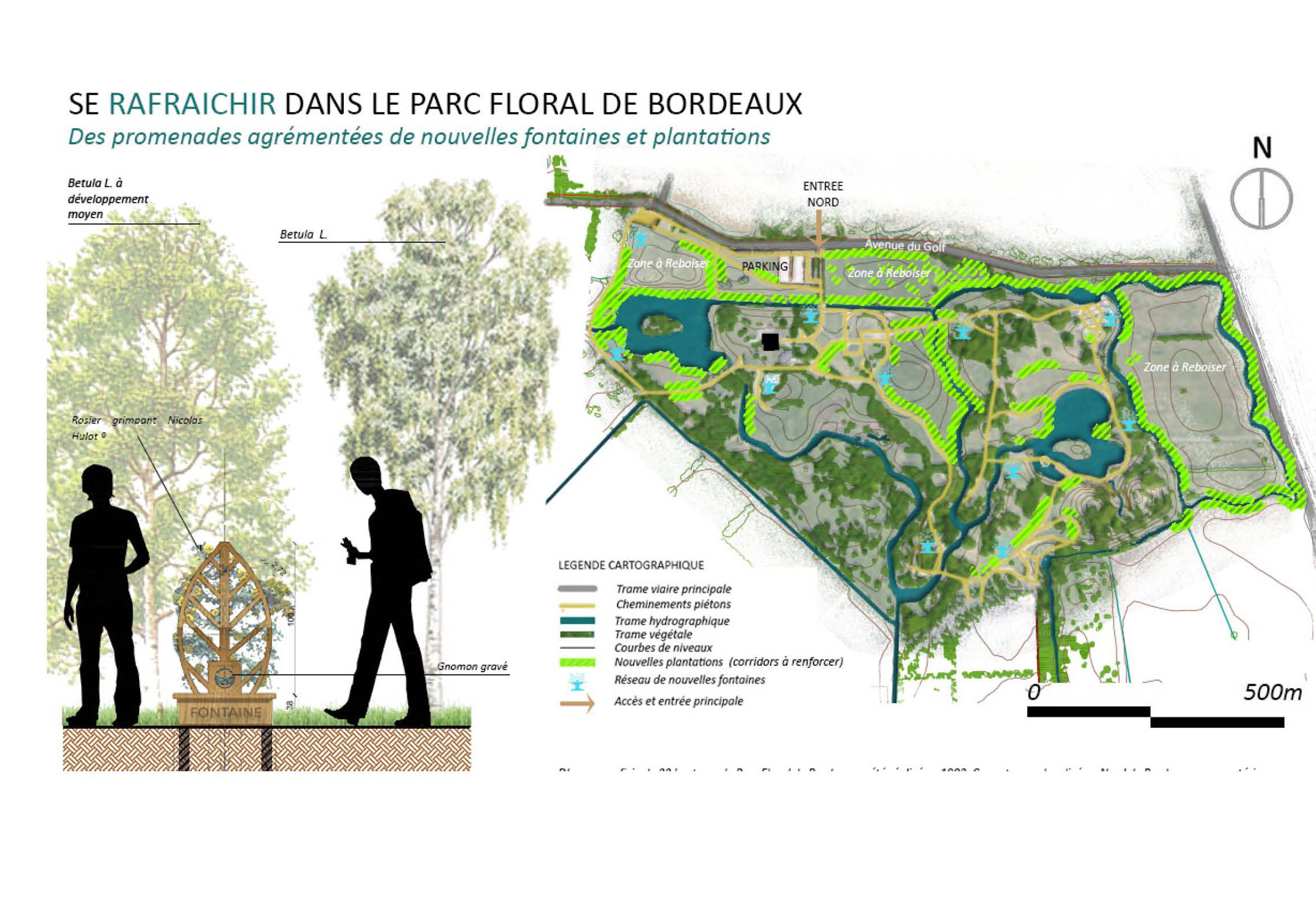 This landscape design’ project proposes the creation of new pathways enhanced by new fountains and plantings within the Floral Park of the Bordeaux’ Metropolis.