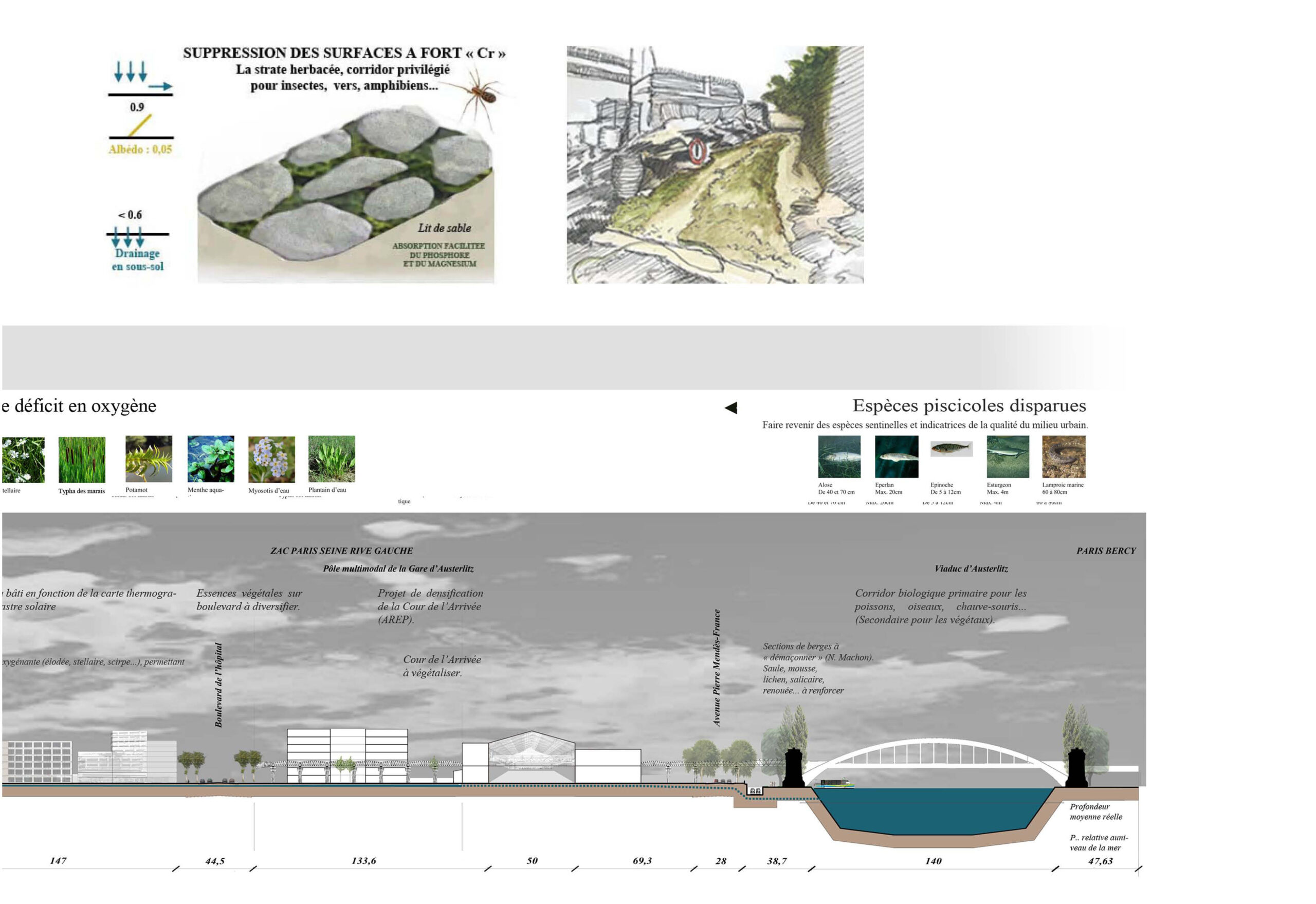 - Final Project “PFE” / Projet de Fin d’Etudes (State architect’ diploma, ENSAPM studies) : “Bringing back Nature into the Buffon-Poliveau District in Paris”