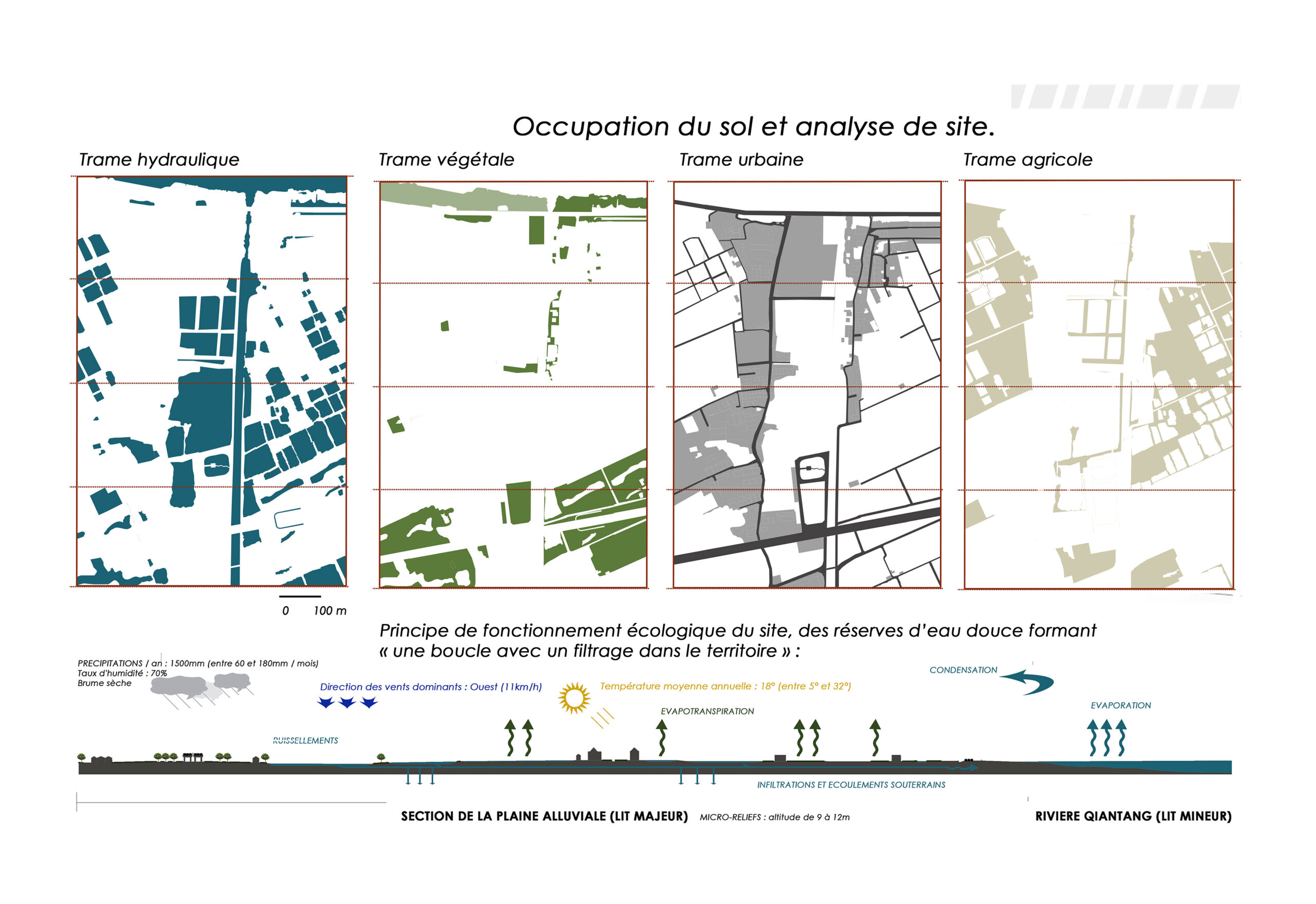 → Territorial and urban planning. My approach of territorial and urban design projects is based on the influence of Italian typo-morphology (studies realized by Saviero MURATORI and Carlo AYMONINO) which inspired the School of Versailles (Philippe PANERAI, Jean CASTEX, and David MANGIN) and the School of Paris (Jérôme TREUTTEL, study named “From Free Space to Public Space”). My conception is characterized by a project strategy based on “strates” (topographical, roads and ways, built, hydrographic, vegetative, climatic layer, etc) as well as an interpretation of the “Environmental Approach to Urbanism” (AEU 1 and 2).