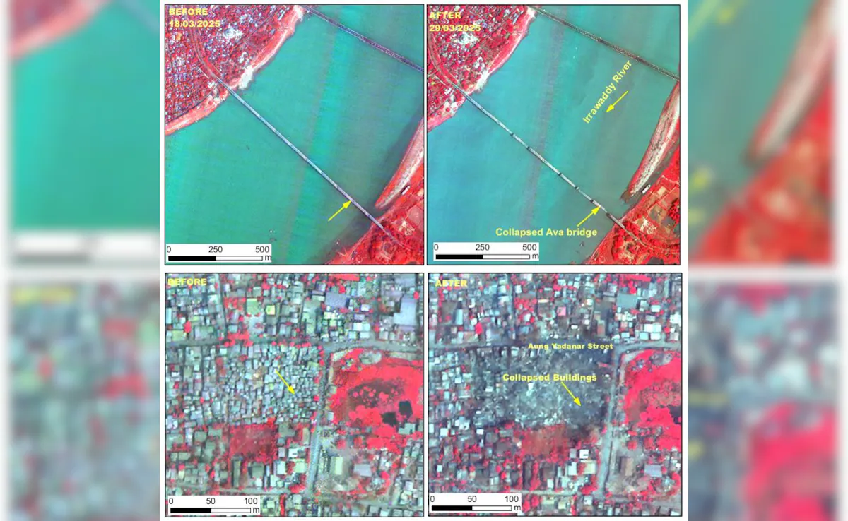 The Indian Space Research Organisation (ISRO) has shared satellite images showing the widespread damage caused by the 7.7 earthquake that affected Myanmar and nearby countries on Friday.