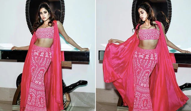 Festive period requires lights, electronic camera and activity, all of which appears to find fabulously from Bollywood. Film promotions automatically become one cheery fashion parade also during this time around or at least Janhvi Kapoor makes it appear so. As she proceeds to start promos of her forthcoming film Mili in full swing, Janhvi Kapoor lands at the Pink City – Jaipur and also you can best think she looked equally fashionable from every angle. One of the most suitable way to arrive stylishly in this lovely pink city is obviously to be worn pink also and Janhvi Kapoor appears to have actually heard us. To make this cheery time much more classy than it already was, she chose a bright neon pink sharara set which was modern essentially yet really did not lack any possible conventional touches it can have had. The set consists of a brief blouse used with a high waisted sharara, all with a different white threadwork needlework done on it in conventional flower patterns. What makes this established extra contemporary is the enhancement of a cape-style shrug layered ahead abandoning the dupatta entirely. A pop of shade originates from her dangling emerald earrings that we can never ever whine way too much off. The hair and make-up division are effectively cared for with a half updo for hair and also a minimal pretty pink shade for makeup topped with lengthy fluttery lashes.