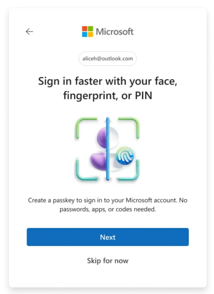Once signed in, users will create their passkeys. Microsoft is also changing the sign-in system so that passkeys are the first choice whenever possible. This is because passkeys are safer and three times faster than passwords.