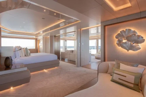 The 255-foot-long ENERGY is a full-custom yacht by Amels, designed by exterior designer Espen Øino and interior designer Francois Zuretti to offer unmatched luxury and water access.
