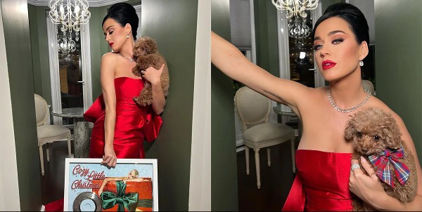 Katy Perry Stuns In Red When Her ‘Cozy Little Christmas’ Song Goes Platinum