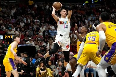 Heat get past Lakers 112-98, climb over 500 at 18-17