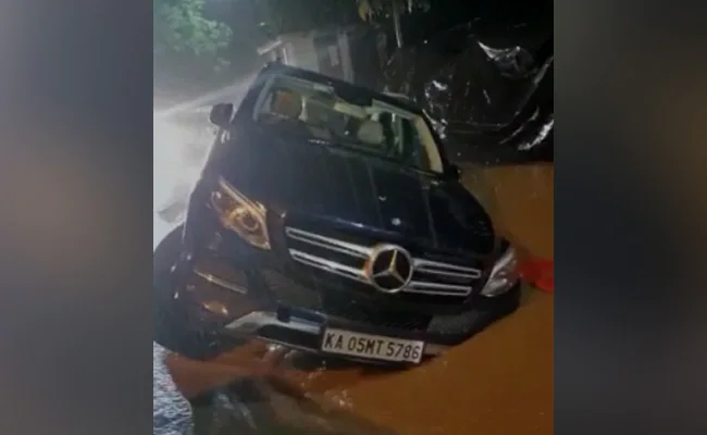 Watch: 2 Wheels In Air, Mercedes SUV Stuck On Waterlogged Bengaluru Roadway