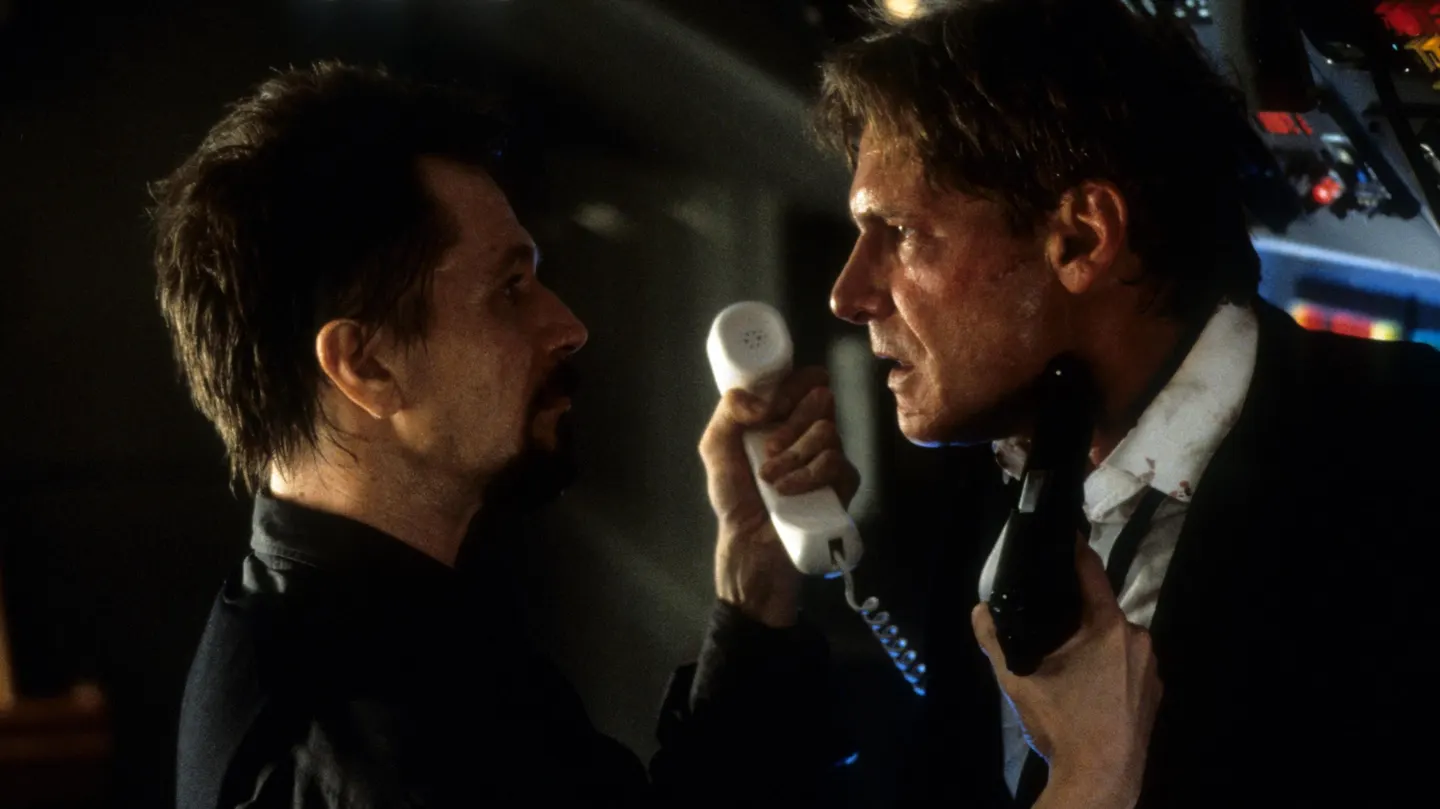Harrison Ford plays President James Marshall in this action movie directed by Wolfgang Petersen. The story follows a terrorist, Ivan Korshunov (played by Gary Oldman), who hijacks the president’s plane. He threatens the president and his family, but Marshall uses his military skills to fight back and save everyone.