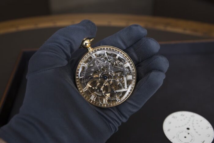 Designed by Abraham-Louis Breguet, it has been called a “poem in clockwork.” Encased in gold, it was a marvel of its time, featuring everything imaginable in that era, from a perpetual calendar to a thermometer. Despite being stolen in the late 1900s, the watch is now safely housed in the L.A. Mayer Museum.