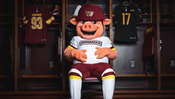 Getting in touch with a historical part of the group’s past, the mascot is a hog putting on a Commanders uniform. His name is Significant Tuddy.